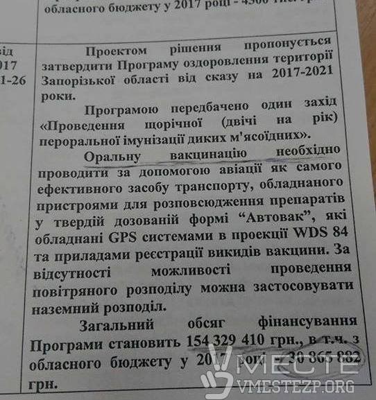 Так что Гордиенко решил перебраться в Запорожье на аналогичную должность, ведь идеи по распилу бюджета были уже придуманы. Никаких протестов в Запорожье не последовало, так что Виталий от радости тут же вляпался в скандал всеукраинского масштаба предложив потратить 154 миллионов гривен на вакцинацию лис с помощью авиации.