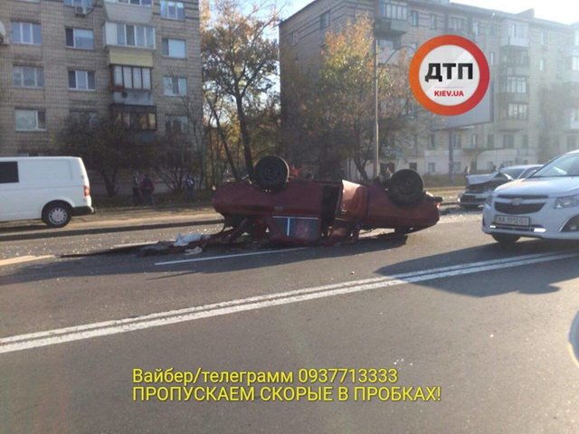Отмечается, что на месте работали медики скорой помощи, полиция и спасатели, которые смывают разлитое топливо с дороги. С обоих сторон к месту ДТП образовалась пробка, в сторону Дарницкой площади автомобили движутся по одному ряду.