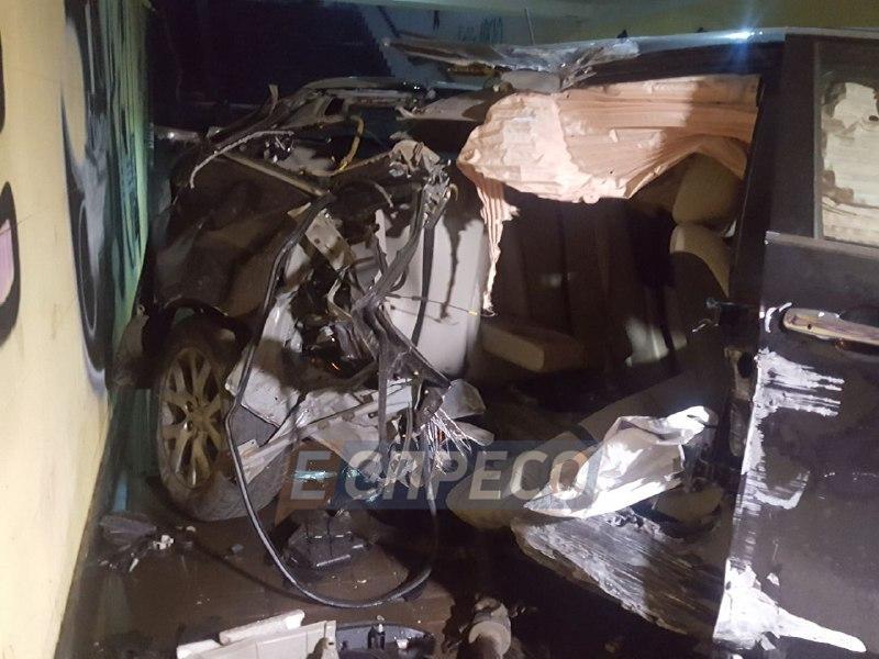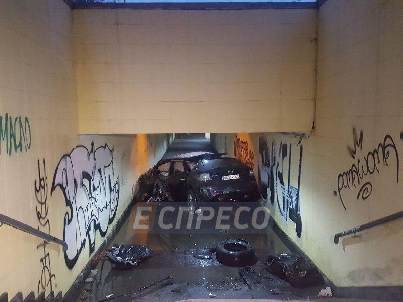 В Киеве автомобиль влетел в подземный пешеходный переход и разбился вдребезги