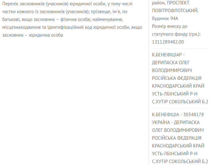 На данный момент он владеет ООО “Николаевский глиноземный завод”, что также указано в открытом реестре. В октябре 2017-го олигарх попытался продать НГЗ швейцарскому трейдеру Glencore, правда, после очередного пакета санкций компания отказалась от сделки.