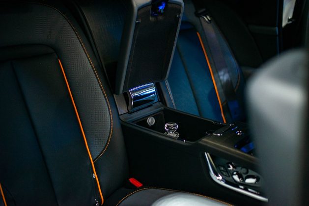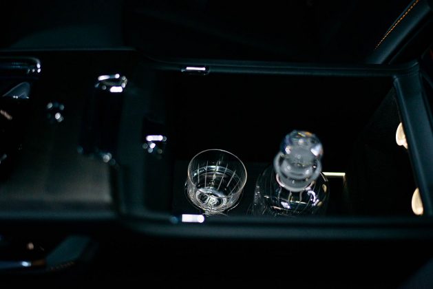 Салон выполнен в лучшем стиле Rolls-Royce. Тут и коврики из овечьего меха, и развлекательный комплекс Rolls-Royce Recreation Module, позволяющий полностью настроить автомобиль под настроение. Для задних пассажиров предусмотрены столики и выезжающие экраны, холодильник с графином и бокалами, воздуховоды для ног, плотные шторки на окнах, отгороженный багажник и возможность заказать стекло, разграничивающее пространство между водителем и пассажирами.