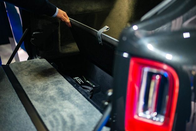 Задний диван можно заказывать и в двухместной версии, и в трехместной, что позволит увеличить 560-литровый багажник до 1930 литров. Дверь в багажное отделение разбита на две секции с электроприводами и может комплектоваться выдвижными креслами со столиком для отдыха на природе.