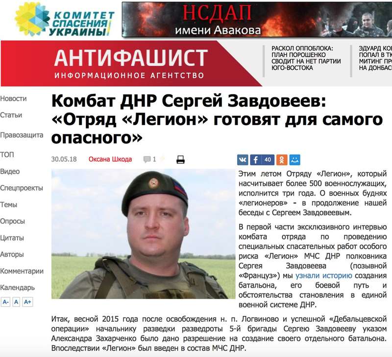 В “новоизбранный” “народный совет ДНР” не вошел один из главарей силовиков группировки, командир банды “Легион” Сергей Завдовеев.