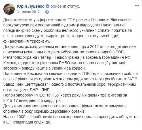 Cкандал вокруг компании вспыхнул в конце марта, когда силовики разоблачили схему особо крупной неуплаты налогов и незаконного вывода миллиардов гривен из Украины через эту компанию.
