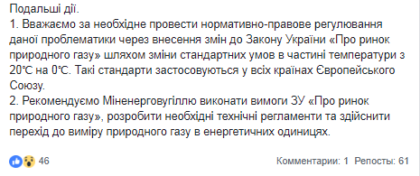 Теперь НКРЭКУ предлагает внести изменения в закон "О рынке природного газа" и обозначить стандартные условия не в +20 градусов, а в 0 градусов, как это и принято в странах Евросоюза. Также комиссия предлагает осуществить переход к измерению природного газа в энергетических единицах.