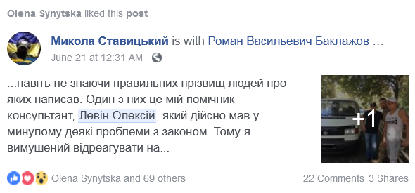 Депутат облсовета Николай Ставицкий (из партии Ляшко) называет своим близким другом киллера Москаленко-Левина. Убийства создают некоторые проблемы?