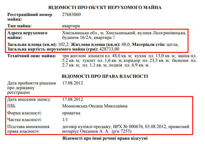 В 2012 году ей удалось приобрести просторную квартиру в новостройке на 102 кв. м в Хмельницком. И опять же, не без помощи родителей.