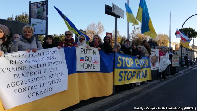 Теги: Керченська протокаагресія РосіїПосольство РФпротестиІталіяРим