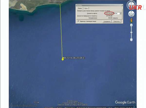 Как видно по результатам геолокации, применение оружия пограничным сторожевым кораблем ФСБ России "Изумруд" было произведено тогда, когда украинский катер "Бердянск" находился в 23,1 км от ближайшей точки на берегу, т.е. за пределами 12-мильной полосы незаконно объявленного российскими властями "территориального моря". Захват обоих украинских катеров и буксира также были произведены за пределами такой "государственной границы", т.е. в нейтральных водах даже в случае допущения признания оккупированного Крыма российским и установленных оккупантом границ нелегального "территориального моря".
