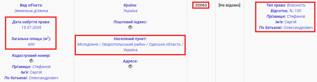 Суддя Сергій Стефанов з 2005 року має у власності земельну ділянку в межах Одеської області на 600 кв. м. Там розміщений житловий будинок на 105 кв. м.