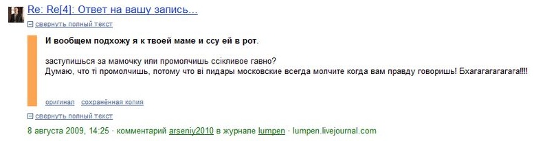 Проблема в том, что lumpen забыл перелогиниться и ответил оппоненту от имени arseniy2010. Петров удалил комментарий и продублировал его уже от своего имени, но было поздно - Яндекс сохранил в кеше такой "комментарий кандидата в президенты Украины".