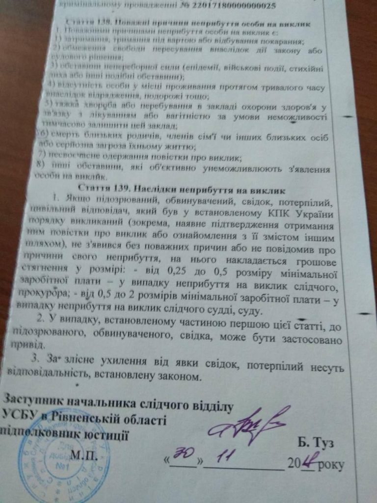 Теги: допросСвященникУПЦ МПРовенская областьСБУ