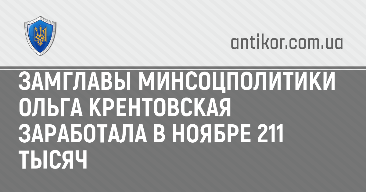 Первый заместитель министра социальной политики Ольга Крентовская заработала в ноябре 211 тысяч 412,74 гривны.