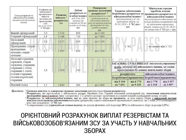 – единовременное денежное поощрение по итогам службы в резерве в прошлом году (от 1600 до 3100 грн).