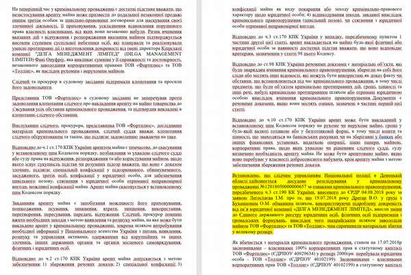 Кроме того, с августа 2018 года следственным управлением Национальной полиции в Донецкой области проводится досудебное расследование по уголовному производству №12018050000000657 по факту завладения обманным путем корпоративными правами, движимым имуществом обществ — ООО «Фортплюс» (ЕГРПОУ 40929634) и ООО «Толлинг» (ЕГРПОУ 40102199 ) и причинению их основателю — компании DILGA MANAGEMENT LIMITED (Лимасол Кипр) ущерба в крупном размере.
