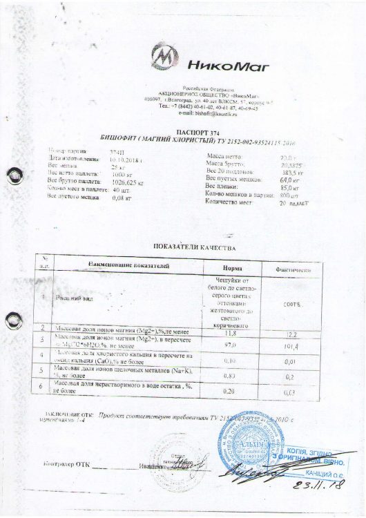 «Я реалізую бішофіт за дещо нижчою ціною, ніж та, за яку придбало його комунальне господарство у Вінниці, але слід врахувати доставку. Сьогодні ціна становить до 19 грн за кілограм, – каже підприємець. – Колись я співпрацював з Волгоградом – там було нормальне виробництво. Інвесторами були німці, але сталося так, що одного інвестора застрелили, а інший втік. Тепер там через Одесу з Україною працюють «православні чекісти». Я з ними не працюю і такого бажання не маю. У мене є друзі в Німеччині. Я перейшов на їхній бішофіт і маю спокій. Європейська сировина відрізняється гарною якістю, от ми її і реалізуємо. Тим більше що в українському законодавстві прописано: якщо є сертифікат походження країн Євросоюзу, у нас виходить нульова ставка мита. Український виробник бішофіту був, але його знищили. Нині такого виробництва немає. Серйозно бішофітом в Україні займається десь п’ять підприємств. Мені пропонували стати «пральною машиною», але я завжди відмовлявся і відмовлятимусь».