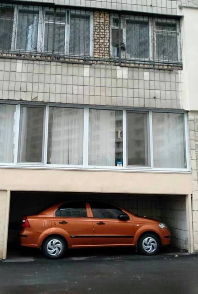 В сети показали очередного “героя парковки”, который умудрился припарковать свой автомобиль под балконом жилого дома.