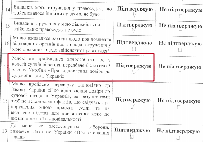 Оскільки Дмитро Валігура приймав рішення, які передбачені ст. 3 Закону “Про відновлення довіри до судової влади в Україні” – він мав би це відобразити в своїй декларації доброчесності за 2016 рік. Однак цього Дмитро Миколайович не зробив. Таким чином, суддею були надані недостовірні відомості у декларації доброчесності.