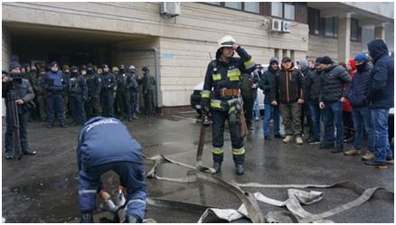 «В период обмена мандатов с балкона с третьего этажа послышался смех, топот и звуки разрывающихся петард. Лично я снимала на видео, как бегали именно титушки, которые были одеты в черное и черные маски , именно титушки сбросили на нас с третьего этажа эти петарды, эти дымовые шашки. Они сбежали с третьего этажа на второй, схватили эти дымовые шашки и с криком пожар выкинули их на улицу. Выбежать нам не было возможности, поскольку перед нами была стена, позади нас был дым …»