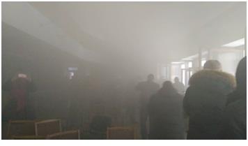 На видео четко видно, как дымовые шашки прямо на головы делегатам конференции бросают люди, желающие срыва конференции.