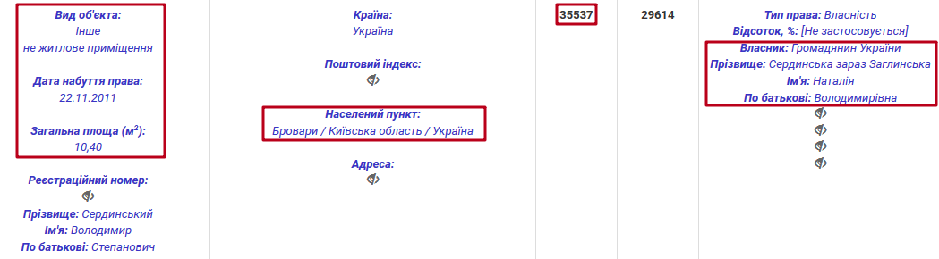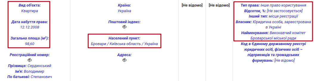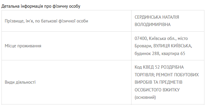 Колишня дружина судді нині працює консультантом у Касаційному кримінальному суді у складі Верховного Суду та подала відповідну електронну декларацію. Нас зацікавило, що з 2013 року Наталія Володимирівна користується квартирою невідомої особи, площею 39 кв. м. Однак у жодній декларації Володимира Сердинського за 2014-2016 роки це житло не згадане. Також відомо, що в період 2007-2014 років Наталія Володимирівна була зареєстрована фізичною особою-підприємцем.
