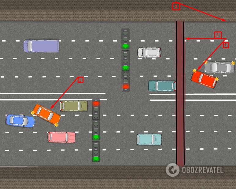 Зеленый – красный. Для водителей, которые движутся в крайней левой полосе, действует отдельная циклограмма светофора. Пока транспортному потоку на трех остальных полосах светит "зеленый", тем, кто слева – "красный". И наоборот.