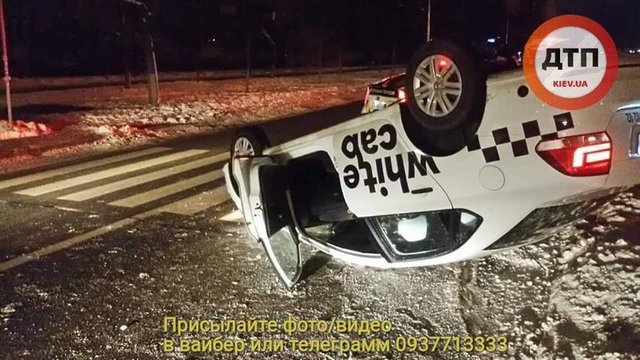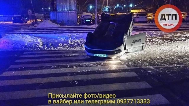 На улице Закревского, 89, в Деснянском районе Киева перевернулся на крышу автомобиль Volkswagen Polo.