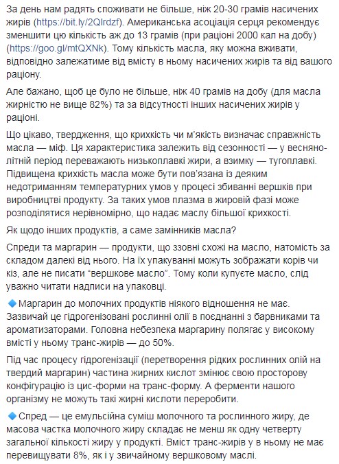 Также она сообщила, что сливочное масло является необходимым продуктом для организма.