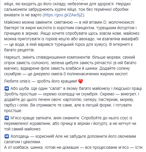 Ульяна Супрун раскритиковала новогоднее меню украинцев с оливье и селедкой под шубой
