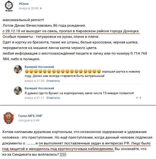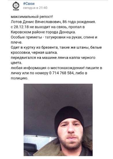 “Ого, пишут, что в Донецке исчез ДНРовец Денис Лотов. Он давал мне интервью. Рассказывал, как Захарченко заказал убийство Жилина и как казаки обстреляли остановку в Донецке 22.01.2015. Тогда много людей погибло, а обстрел свалили на ВСУ”, – написал он и разместил видео с информацией о боевике.
