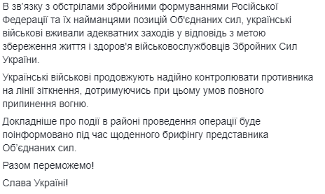 Об этом сообщает пресс-служба штаба операции Объединенных сил (ООС) в Facebook.