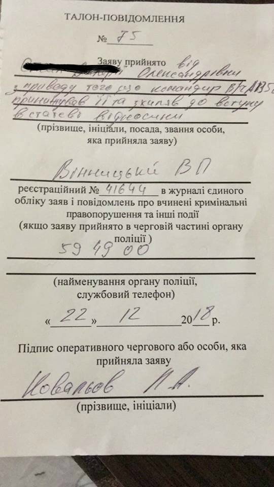 30 декабря Воинская служба правопорядка на своей странице в facebook сообщила, что приняла заявление и до 9 января они должны установить все факты и проверить из на соответствие.
