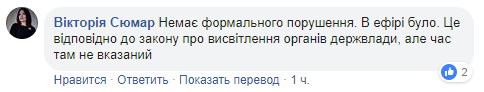 В то же время глава Комитета Верховной рады по вопросам свободы слова, народный депутат от “Народного фронта” Виктория Сюмар прокомментировала, что формально нарушения в действиях телеканала не было.