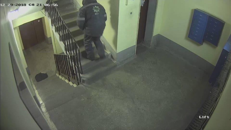 У спільноті опублікували фото, зроблені на камери відеоспостереження у багатоповерхівці. На них видно, як чоловік у формі справляє нужду на сходах. Про мережу АЗС, де працює чоловік, не повідомляється.