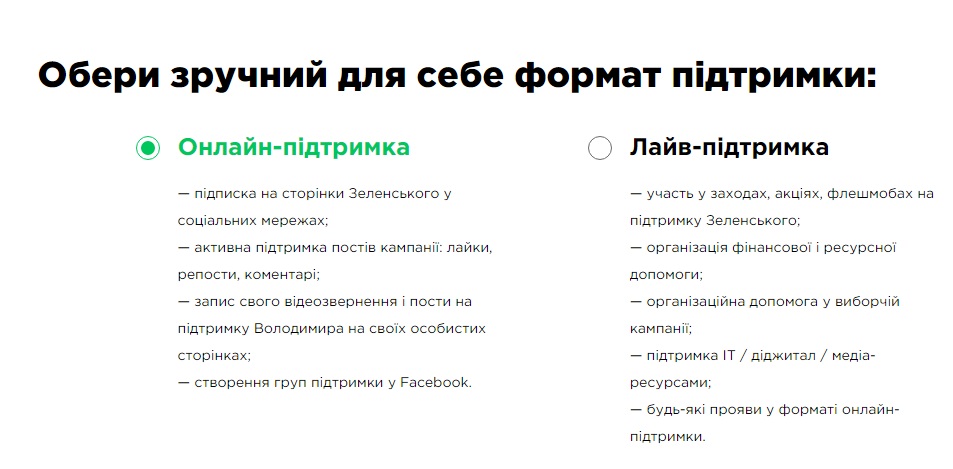 «Я вірю, що змінити країну можна тільки разом з тобою. Не стій осторонь – приєднуйся до моєї команди. Не важливі твоя стать, релігія, освіта, «язык, на котором ты говоришь». Важливо: ти ніколи не був у політиці, і поки що це – найголовніше. Чекаю тебе тут (ze2019.com). Я йду. Ходімо зі мною, зробимо це разом!».