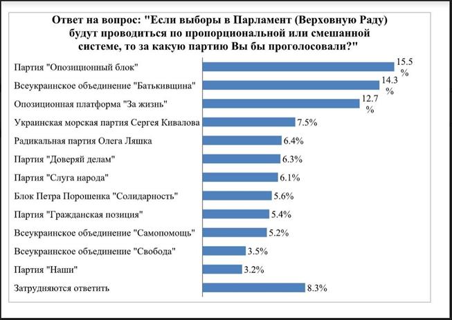 Возможно изменение избирательного законодательства, при котором возрастет роль политических партий в формировании парламента. Симпатии опрошенных отразились на следующем графике.