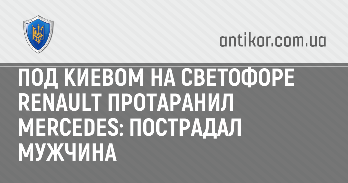 Под Киевом на светофоре Renault протаранил Mercedes: пострадал мужчина