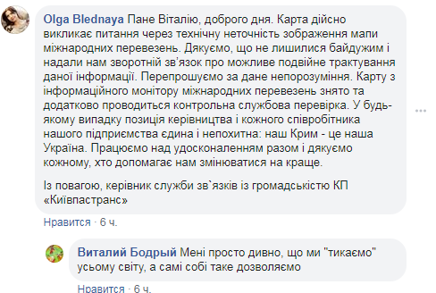 В свою очередь руководитель пресс-службы КП "Киевпастранс" Ольга Бледная ответила Бодрому в комментариях под постом. Она отметила, что карта действительно является технически неточной.