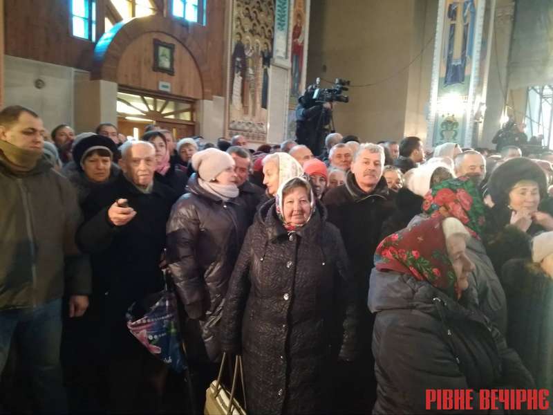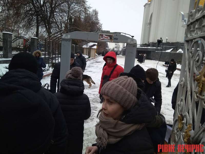 З 10-ї до собору пропускали вірян та журналістів. Обшукували речі металевою рамкою та за допомогою службового пса, передає Рівне Вечірнє.