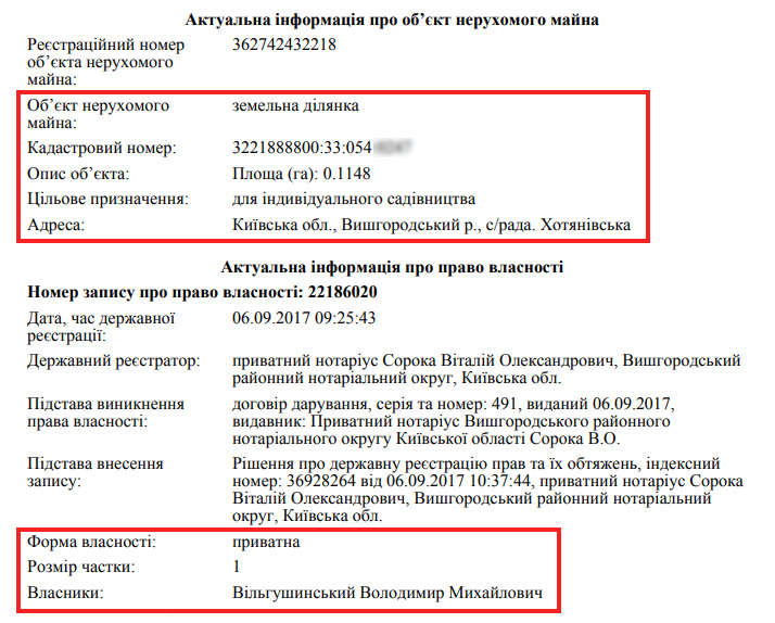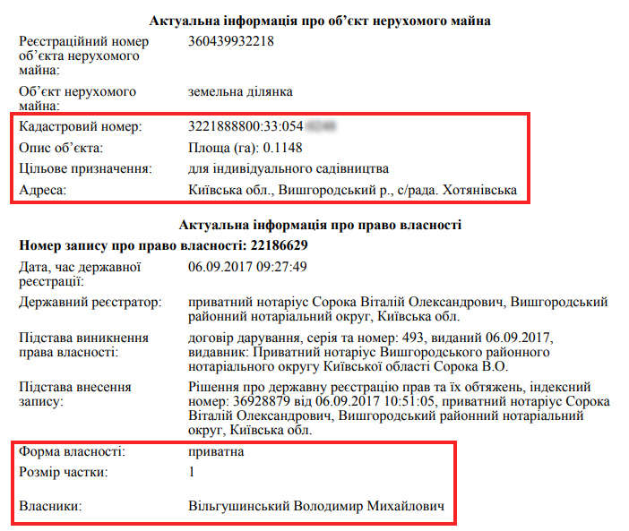 На додачу до квартир і паркомісць, є у сина Володимир й сім земельних ділянок у Хотянівці під Києвом. Чотири ділянки він сам придбав, а три – подаровані матір’ю судді.