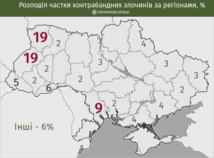Так как пограничники более придирчивы на восточных границах, по статистике жителей как раз этих областей чаще ловят на контрабанде. Правда, жителей Львовщины и Волыни ловят на контрабанде вдвое чаще, чем жителей любой другой области.