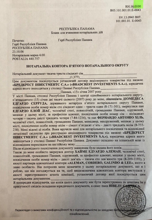Адвокат отметил, что в НАБУ давно был учредительный договор компании «Бредкрест», которая является акционерным обществом. «Обвинение знает, что Николай Мартыненко там никогда не фигурировал, акциями не владел, не распоряжался средствами «Бредкреста» и не принимал никакого участия в деятельности этой компании. Ксерокопия без печати о якобы открытии счета, которой размахивают НАБУ и САП - это смешно. В банковскую анкету можно вписать данные любого человека. Но главное другое: на тот момент этой компании не существовало и открытие ее счета было невозможно. Это как родить ребенка без беременности», - сказал Петр Бойко.