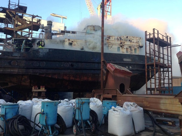 В Николаеве в понедельник, 14 января, в одном из цехов на территории верфи случился пожар на судне.