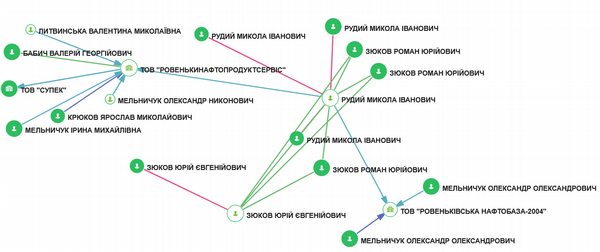 Под прицелом СБУ оказались: ООО «Галс Моторс» (код ЕГРПОУ 21966190, адрес регистрации: г. Донецк, ул. Б. Хмельницкого, д. 55 , в списке учредителей — житель Ровеньков Роман Юрьевич Зюков (30%), ООО «ДонЛекс» (код ЕГРПОУ 35682910, адрес: г. Донецк, ул.Воинская, д. 36, среди учредителей – Юлия Сергеевна Зюкова (58%), проживающая в Ровеньках), ООО «Торгово-посредническая фирма «Донбасс-уголь» (код ЕГРПОУ 37713992, г. Ровеньки, ул.Маркса, д.146), ООО «Украина-Донбасс» (код ЕГРПОУ 31023054, г. Ровеньки, ул. Капанелли, д. 2 Б), ООО «Автомобильный центр «Энергия » (код ЕГРПОУ 37824414, г. Алчевск, ул. Ленинградская, д. 3, среди учредителей жительница оккупированного Крыма Рудая Любовь Иосифовна), ООО «Гоф «Алмаз» (код ЕГРПОУ 35937821, Ровеньки, ул. Выгонная, д. 1А, среди учредителей та же Рудая Л. И.), ООО «Галсмотор» (код ЕГРПОУ 38263228, г. Донецк, Взлетная 7-В, среди учредителей Рудая Л. И.), предприятие «Ритм» (код ЕГРПОУ 31380956, г. Ровеньки, ул. Маркса 146, среди учредителей Рудая), ООО «Борс» (код ЕГРПОУ 34942631, Киев, Княжий затон, д. 2/30, среди учредителей жители Ровеньков и ООО «Украина-Донбасс»), ООО «Ровеньковская нефтебаза» (код ЕГРПОУ 32842161, среди учредителей Рудой Николай Иванович, прописанный по одному адресу с отцом и сыном Зюковыми, оффшорная компания «VUTEK LIMITED» (Кипр) и Мельничук Александр Александрович), ООО «Гоф «Дарьевская» (код ЕГРПОУ 35937816, среди учредителей которой тот же Мельничук и тот же кипрский оффшор), а так же — оффшоры «VUTEK LIMITED», «DONBAS COAL LLP», «RENTONRESOURCES LLP», и три другие фирмы, названия которых в решении зашифрованы.