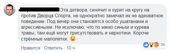 Те, кто встречал данных подростков, пишут, что они употребляют спиртные напитки и нецензурную брать, курят и громко слушают музыку. Некоторые пользователи отмечают, что это не первое нападение на людей в этом месте. Бывали и массовые драки.