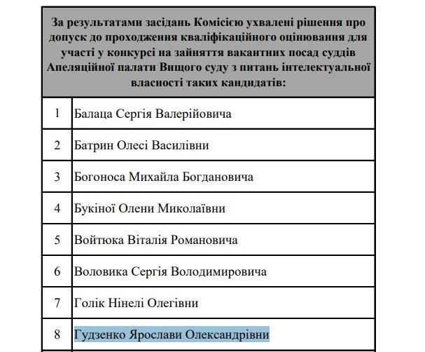 Несмотря на открытое уголовное производство, по окончании срока полномочий Гудзенко Высший совет правосудия принял решение внести представление о ее новоназначеннии. В декабре 2018 года Президент Украины издал соответствующий указ. Теперь судья уже проверяет свои силы в конкурсе в Высший специализированный суд.