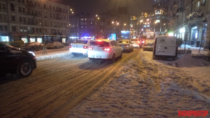 Значительные ухудшения погодных условий сполна отразились на движении транспорта в столице. Так, в районе Бессарабки, улицы Бассейной, Эспланадной и Леси Украинки наблюдаются сильные пробки, движение практически парализовано.