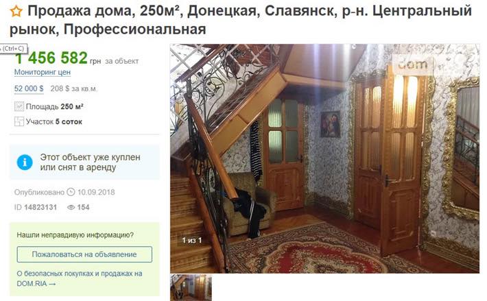 Куць указал, что за 2-х этажный дом для переселенцев заплатили 2 млн. бюджетных денег. Однако, объявление о продаже этого же дома довольно быстро нашлось в Интернете. И там его цена составляла не 2, а 1,5 млн. грн.