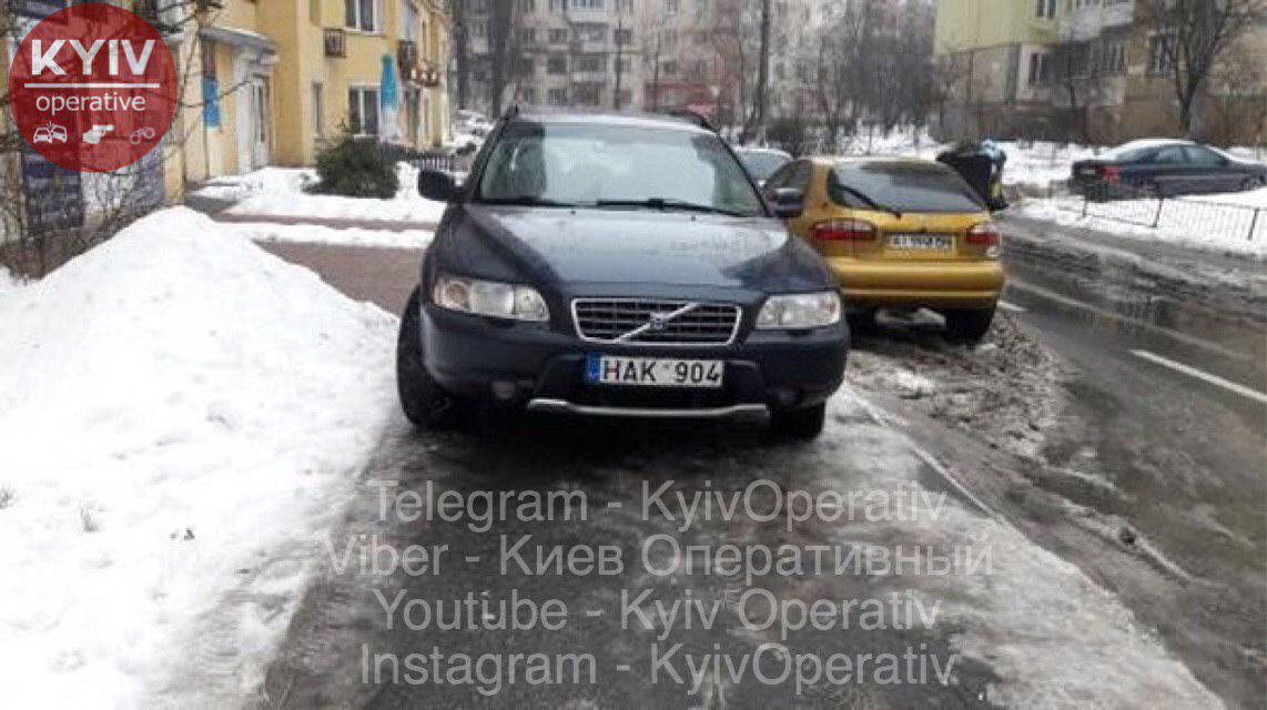 “Герой парковки” в Киеве заставил прохожих обходить его авто по льду