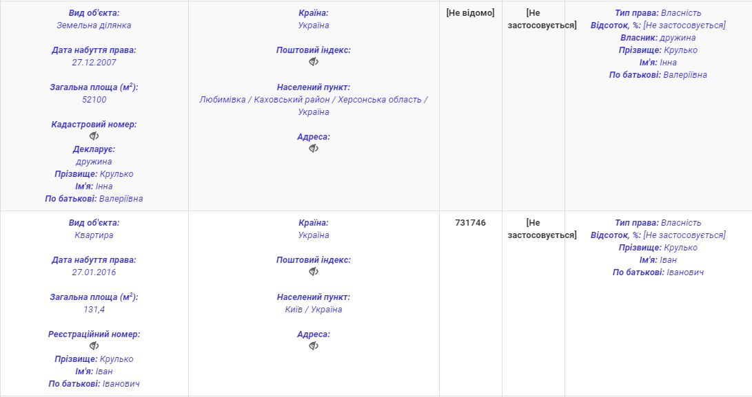 Крулько владеет тремя земельными участками в Киевской и Херсонской областях, квартирой и гаражом в Киеве (последний, вряд ли стоит 5 миллионов гривен, – ред.). Скорее всего, речь идёт о продаже участков в Киевской области: 1000 квадратных метров в Борисполе либо 1200 квадратных метров в Броварском районе.